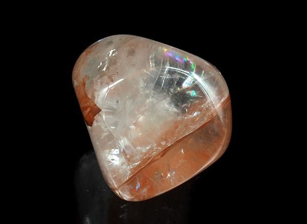 気の遠くなる時間の流れの中で水晶が成長する過程において、地球規模のエネルギーが加わると水晶はゆがんだり、内部にクラックが入ったりします。そのクラック層の中で光の干渉現象で現れる虹色効果(虹色のイリデッセンス)をもつ水晶がレインボークオーツです。また、成長の途中過程で他の鉱物が薄い膜を張ることで、虹色効果(虹色のイリデッセンス)が出るものもあります。