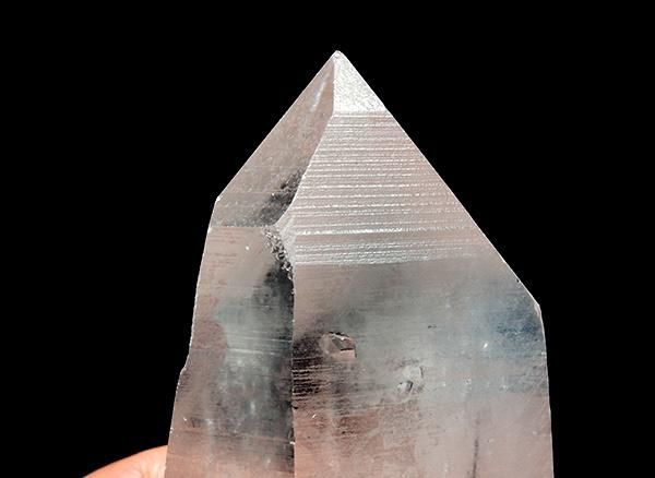 レムリアンシードは柱面にレムリアンリッジと呼ばれるバーコード状の縞条線やレコードキーパー(三角形)やトライゴーニック(逆三角形)と呼ばれる三角形の食像などが見られるのが特徴ですが、こちらは透明感があり、レムリアンリッジが見られるタイプです。