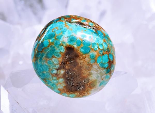 ご存知、ネイティブアメリカンにとっては神や精霊が宿る守護石として、珊瑚とともによく身につけられていました。またナバホ族が雨乞いの儀式として使用していたのもターコーズです。