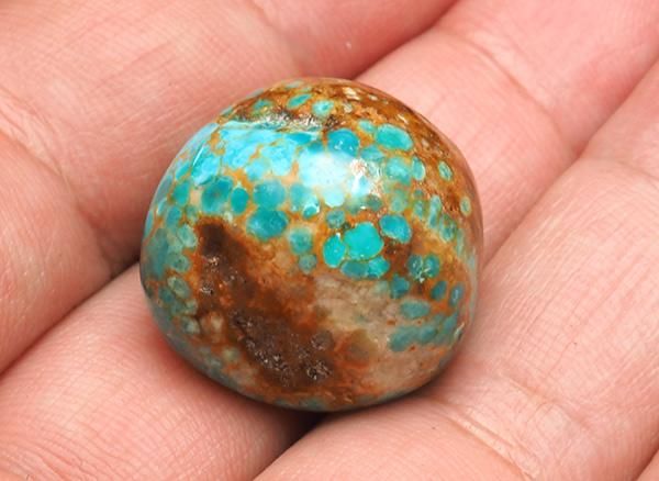 1929年から1961年まで採掘されていましたが、こちらはすでに閉山になったアメリカ・ネバダ州のアメリカ・ネバダ州Carlin近郊ににある通称ナンバーエイト鉱山(第8区鉱山)のターコイズです。特徴はグリーンがかった独特の色味、そして母岩にマトリックス状に入ったスパイダーウェブです。すでに埋め立てられて、出てくることもなくなったナンバーエイトの原石ですが、こちらは当時、入手していた業者の放出品です。現在では高品質な原石は非常に希少で、コレクターの間でも人気が高く、価格も上昇傾向にあります。