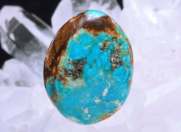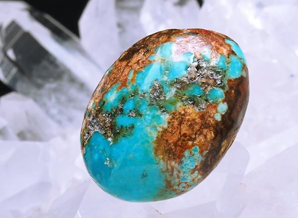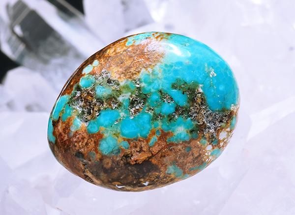 ご存知、ネイティブアメリカンにとっては神や精霊が宿る守護石として、珊瑚とともによく身につけられていました。またナバホ族が雨乞いの儀式として使用していたのもターコーズです。