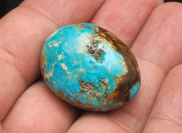 1929年から1961年まで採掘されていましたが、こちらはすでに閉山になったアメリカ・ネバダ州のアメリカ・ネバダ州Carlin近郊ににある通称ナンバーエイト鉱山(第8区鉱山)のターコイズです。特徴はグリーンがかった独特の色味、そして母岩にマトリックス状に入ったスパイダーウェブです。すでに埋め立てられて、出てくることもなくなったナンバーエイトの原石ですが、こちらは当時、入手していた業者の放出品です。現在では高品質な原石は非常に希少で、コレクターの間でも人気が高く、価格も上昇傾向にあります。