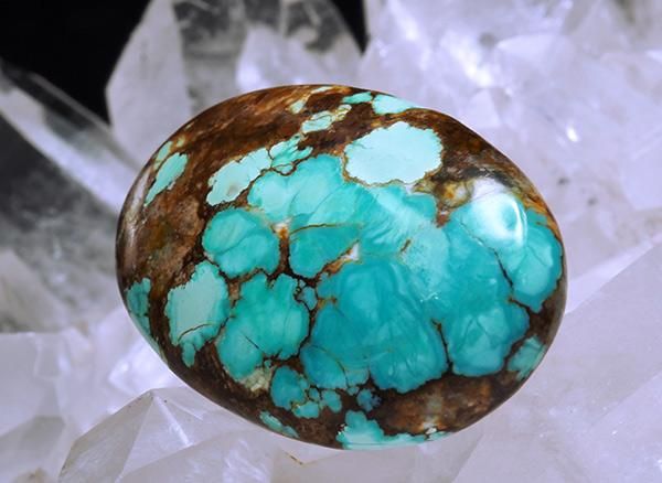 ご存知、ネイティブアメリカンにとっては神や精霊が宿る守護石として、珊瑚とともによく身につけられていました。またナバホ族が雨乞いの儀式として使用していたのもターコーズです。