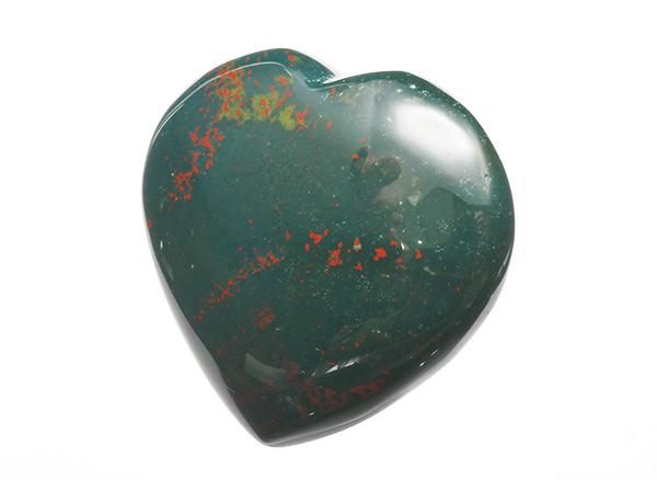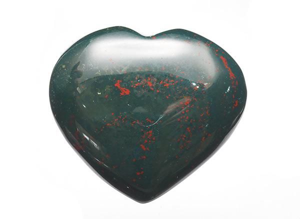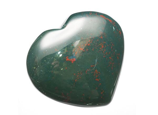 ブラッドストーンは細かい粒の石英の結晶が集まったカルセドニー、ジャスパーの仲間で暗い緑色の地色に酸化鉄である赤色や赤褐色の斑点があるものを呼びます。キリスト教では血のような斑点は十字架上のキリストの血がブラッドストーンに落ちてできたものだといわれ、聖なる石としてあがめられてきました。また、エジプトの太陽を呼び戻すという地名のヘリオポリスでよく採られたため別名ヘリオトロープとも呼ばれていました。神秘的要素の強い石でもあり、晴天を願うならこの石に願いを込めてみるのもよいでしょう。