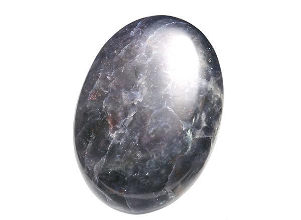 アイオライトサンストーンのペブルです。アイオライトですが、キラキラと輝くアベンチュレッセンス(アベンチュリン効果)が見られるものです。そのためアベンチュリンアイオライトとも呼ばれます。所々中で輝くピンクの光はレピドクロサイトによるもので、宇宙に輝くピンクの星のようにとても幻想的でロマンチックな印象です。見ているだけで創造性を描きたててくれるこの石は未来を予言する石としての異名を持っています。