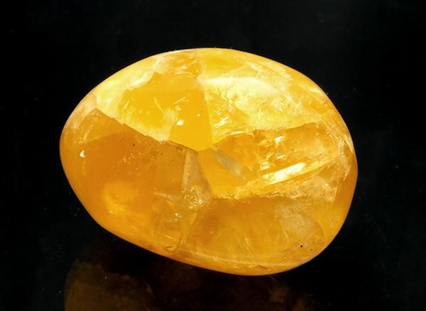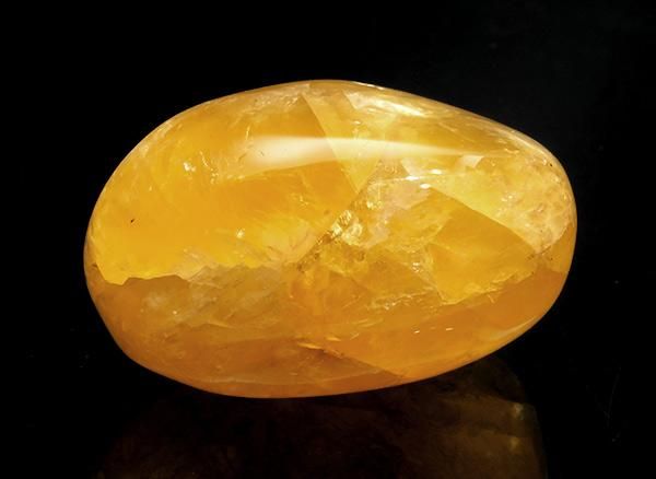 こちらはイエロー・フローライトです。イエロー・フローライトは創造性を促進し、好奇心を高めてくれる石です。コミュニケーション能力も高まるので、グループで行動するときや、自らの世界を広げたいとき、新たなことにチャレンジするときなどにはとても有用な石です。心身のバランスを保つ働きがあり、解毒作用も強いため肝臓や腎臓の働きにはよいとされています。