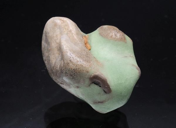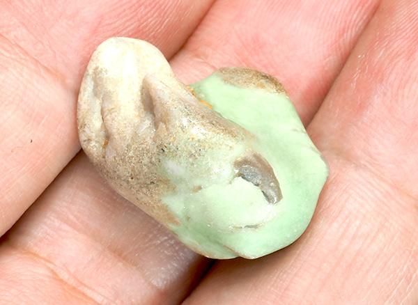 バリサイトはアルミニウムを含むリン酸塩鉱物の一種で、アメリカのユタ州で産出されターコイズと間違われたため、ユタターコイズとも呼ばれたりします。フォスフォシデライトと同じグループで、フォスフォシデライトは鉄イオンを含むことからピンク色に、バリサイトはアルミニウムと燐酸、水が主成分ので緑色になります。