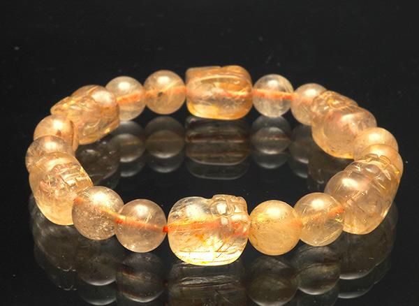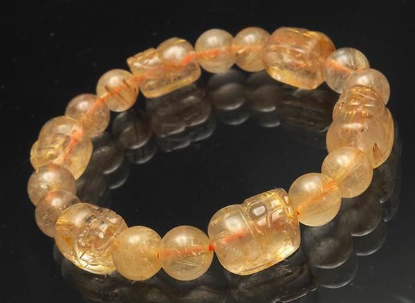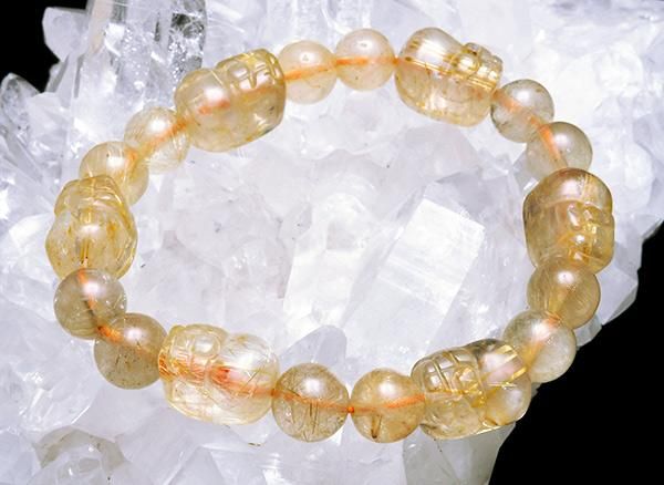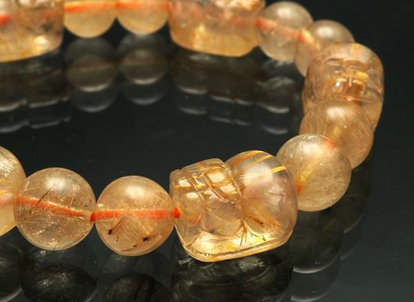 貔貅(ヒキュウ)ビーズ入りゴールドルチルクォーツ約14mm×10mm×10mm(6粒)/約9mm(12粒)腕回り:約16cm