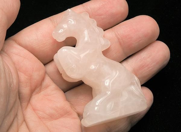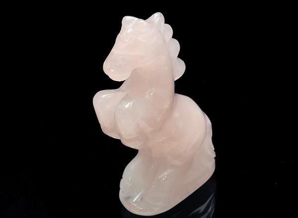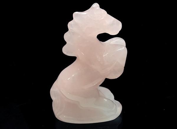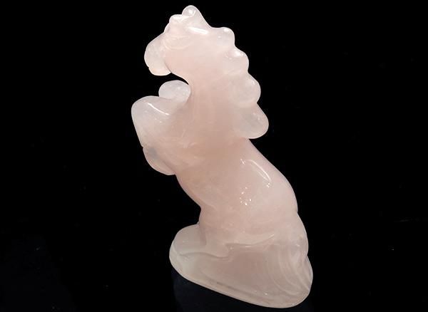 こちらはとても躍動感のあるピンク色のブラジル産ローズクォーツの馬です。