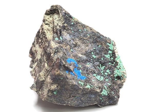 ブルーとグリーンのアートな色彩のアズロマラカイトの結晶原石