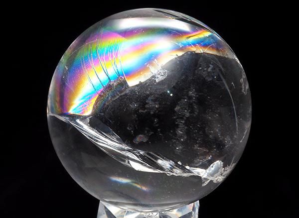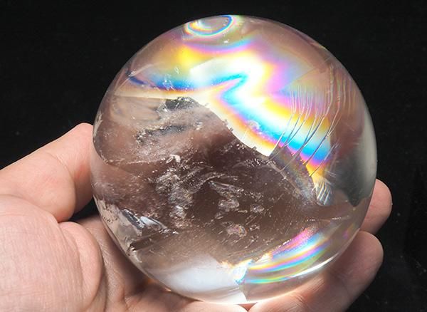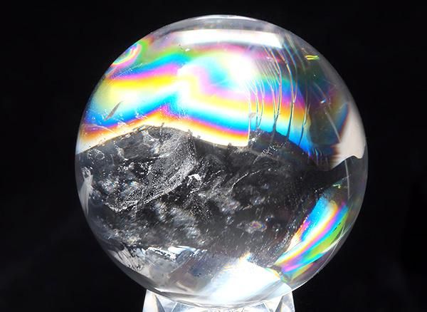 美しいレインボー水晶の大玉です。こちらはバーイア州産のレムリアンシードをスフィアにしたものです。美しい虹の神秘性もさることながら、ここれほど透明感のあるレインボー水晶は昨今なかなか入手が困難です。