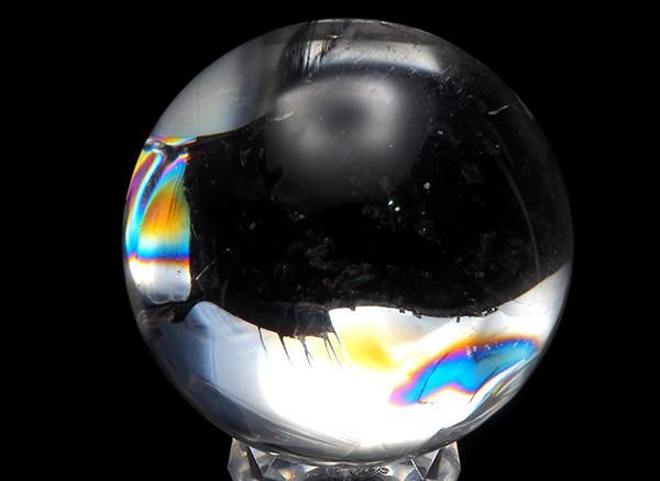 極上の美しすぎるシリウスレムリアンのレインボー水晶・スフィア(丸玉)台座付き