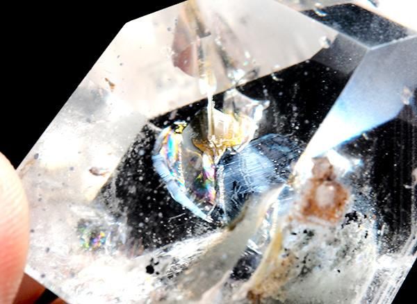 美しすぎる黒雲母入りレインボー貫入水晶のポイント