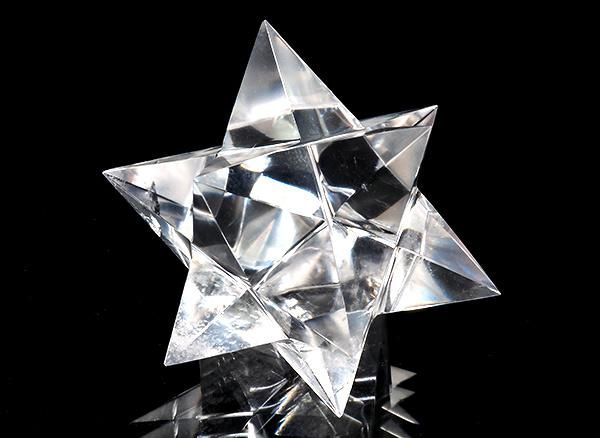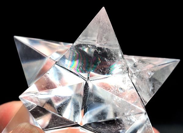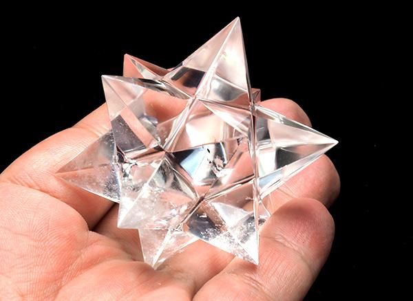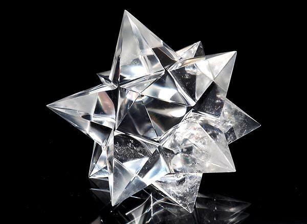 こちらは小星型十二面体の水晶です。小星型十二面体には五芒星であるペンタグラムと六芒星(ダビデの星)であるヘキサグラムが同一化している12の頂点をもつ星型形状で、アステロイドともよ呼ばれています。