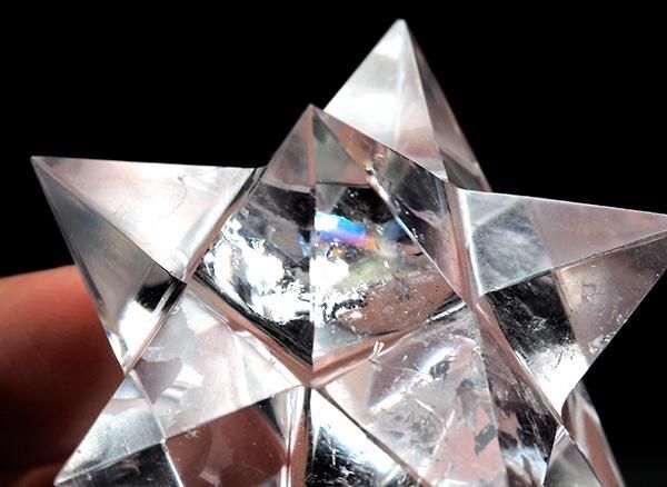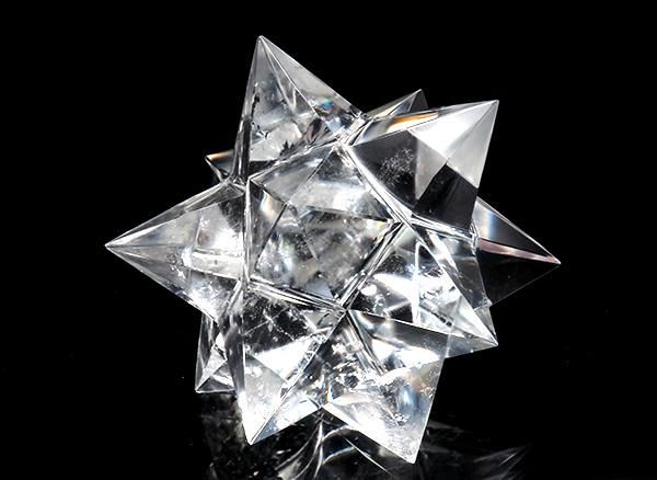 こちらは小星型十二面体の水晶です。小星型十二面体には五芒星であるペンタグラムと六芒星(ダビデの星)であるヘキサグラムが同一化している12の頂点をもつ星型形状で、アステロイドともよ呼ばれています。