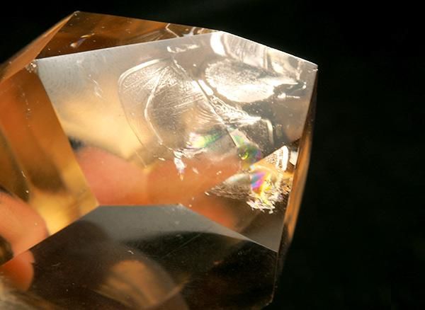 気の遠くなる時間の流れの中で水晶が成長する過程において、地球規模のエネルギーが加わると水晶はゆがんだり、内部にクラックが入ったりします。そのクラック層の中で光の干渉現象で現れる虹色効果(虹色のイリデッセンス)をもつ水晶がレインボークオーツです。また、成長の途中過程で他の鉱物が薄い膜を張ることで、虹色効果(虹色のイリデッセンス)が出るものもあります。