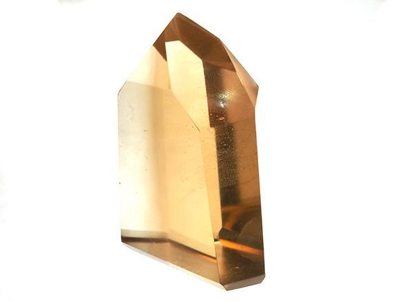 ブラジル ミナスジェライス州 イチンガ産のポリッシュ加工された天然色シトリンクォーツのポイントです。