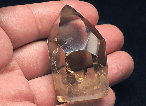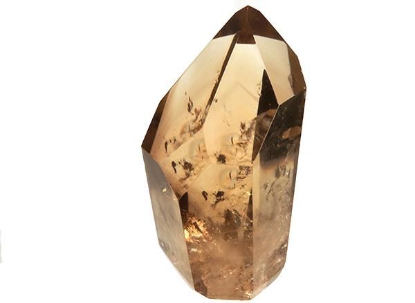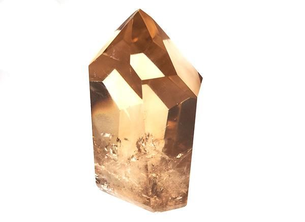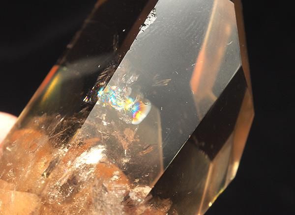 ブラジル ミナスジェライス州 イチンガ産のポリッシュ加工された天然色レインボーシトリンクォーツのポイントです。