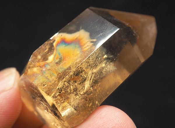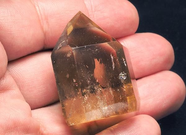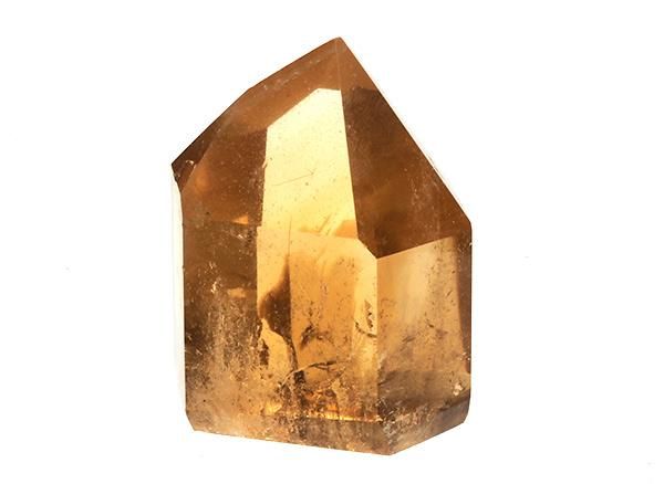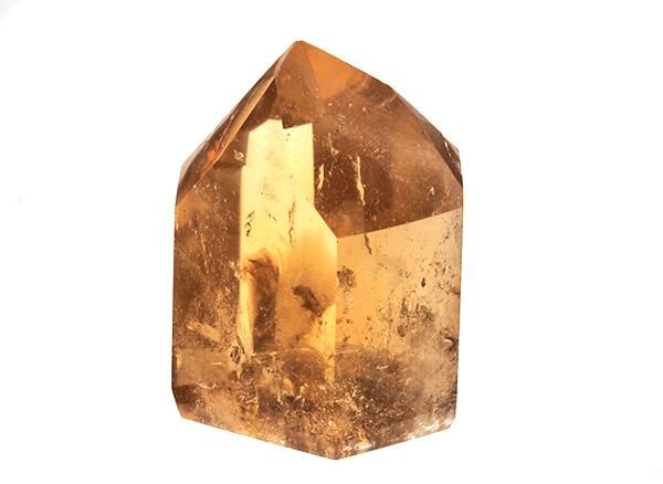 ブラジル ミナスジェライス州 イチンガ産のポリッシュ加工された天然色レインボーシトリンクォーツのポイントです。