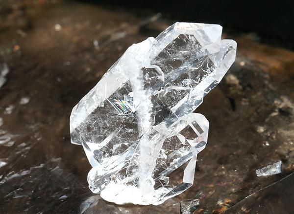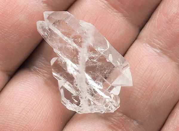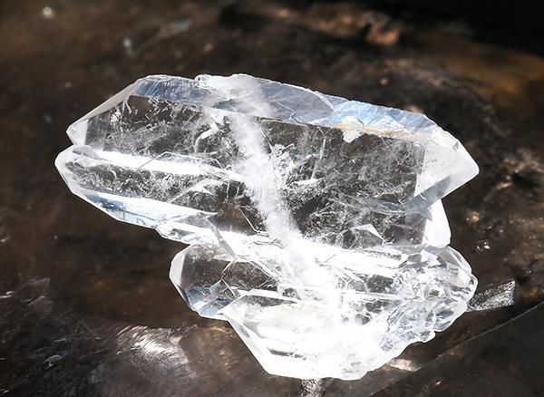 ファーデンとはドイツ語で「糸」の意味で、この白い筋状の原因は水晶の割れ目が修復するように再結晶したものという説もありますが、実際はファーデン・ラインと呼ばれる白い筋状とその両側に水晶の結晶が複数同時成長したものと考えられています。どちらにしてもこの水晶の形成過程はとても複雑かつ神秘的です。