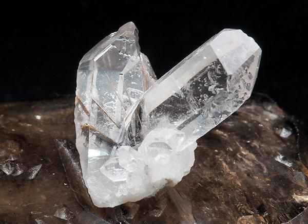 クラスターの下部にブルッカイトがみられます。水晶の透明度も申し分ありません。