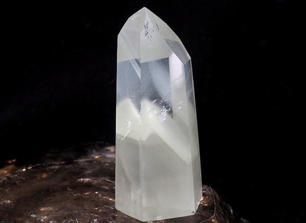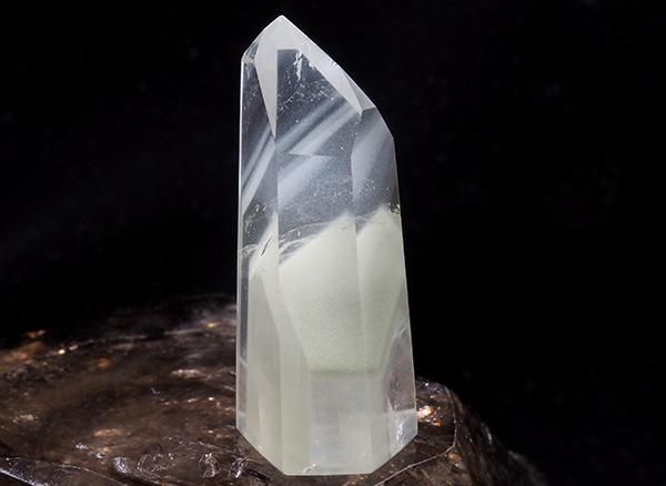幾重にも重なったファントムがまるで龍脈のようなので龍脈水晶ともいいます。大地の気は山の尾根伝いに流れると考えられており、その流れが龍のように見えることから龍脈といいますが、風水では、この龍脈の気が噴き出すポイントである龍穴に住むと、一族は永きに渡って繁栄できると考えられています。そういうことであればこのポイントは高い位置に置いた方が良いかもしれませんね。