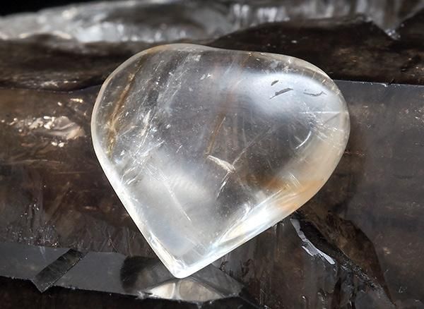 ブラジル・バイーア州コルデイロス産のファントムアメジストのハートタンブルです。これだけ美しいアメジストはなかなかお目にかかれません。ファントム部分にUVライトを当てると幻想的な光を放つことから、この名称を使用しておりますが、鑑定の結果、パウエライトは含まれず、それ以外の蛍光鉱物が含まれており、流通名としてパウエライト・ファントムアメジストとされています。一部では、灰重石(シーライト:Scheelite)変種や、鉄イオンの影響による発色が関係している可能性も示唆されていますが、実際には正体不明の蛍光鉱物が含まれている可能性が高いというのが現状です。