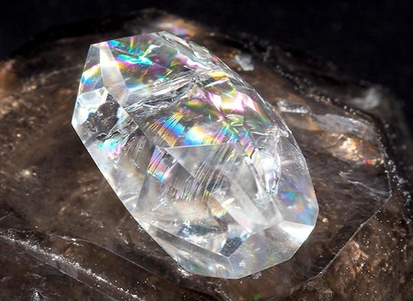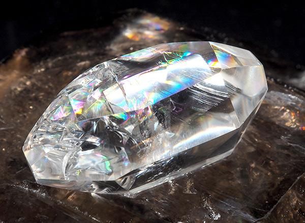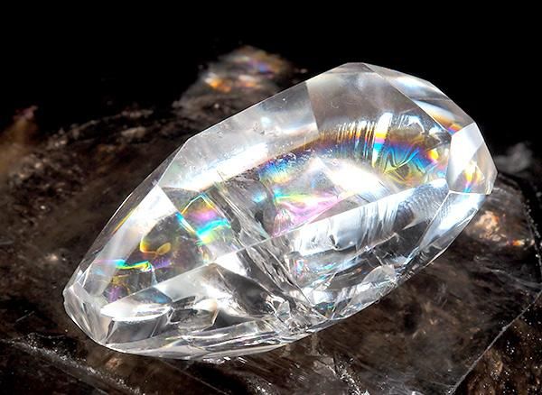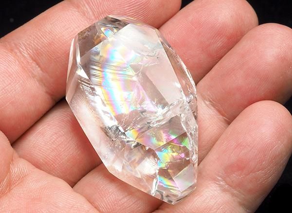イリデッセンス効果最高級レベルで、水晶の透明度も抜群です。手のひらにのせると、氷の中に閉じ込められた虹の源が今にも溶け出して出てきそうな錯覚さえ覚えます。家の中の守護石としては申し分ありません。レインボークォーツはわすかな光源でも充分に効果を発揮してくれます。