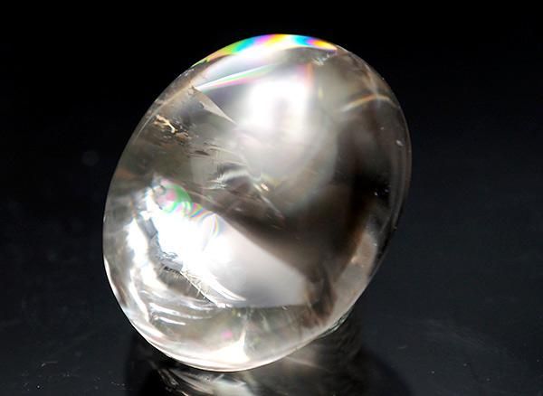 イリデッセンス効果最高級レベルで、水晶の透明度も抜群です。手のひらにのせると、氷の中に閉じ込められた虹の源が今にも溶け出して出てきそうな錯覚さえ覚えます。家の中の守護石としては申し分ありません。レインボークォーツはわすかな光源でも充分に効果を発揮してくれます。