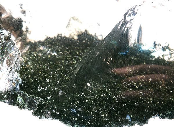 こちらのガーデンクォーツは成長していく過程で、何らかの影響を受けて一旦成長が止まった水晶の表面にクローライトなどの他の鉱物が付着し、再度成長が始まるような過程を繰り返すことにより、山のような幻影や木の年輪を思わせるファントムが形成されています。これはファントム・クォーツと呼び、物事が停滞している事象を促進させる働きがあるといわれています。