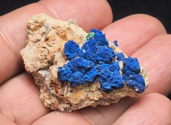 紺青の花と呼ばれるアズライトは古来より青をあらわす顔料や岩絵の具の原材料として使用されていました。アズライトは銅鉱床が形成された後に,変成作用や変質作用などで形成された二次鉱物で、銅鉱床の花とも呼ばれ、マラカイトと共生しやすい鉱物です。