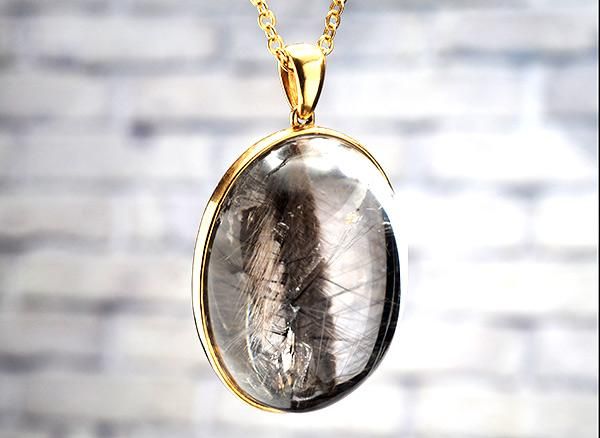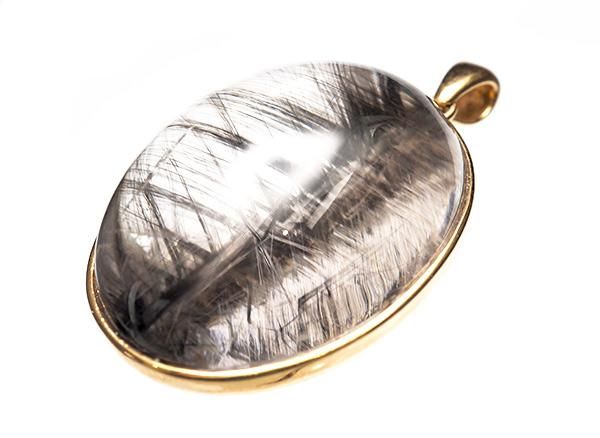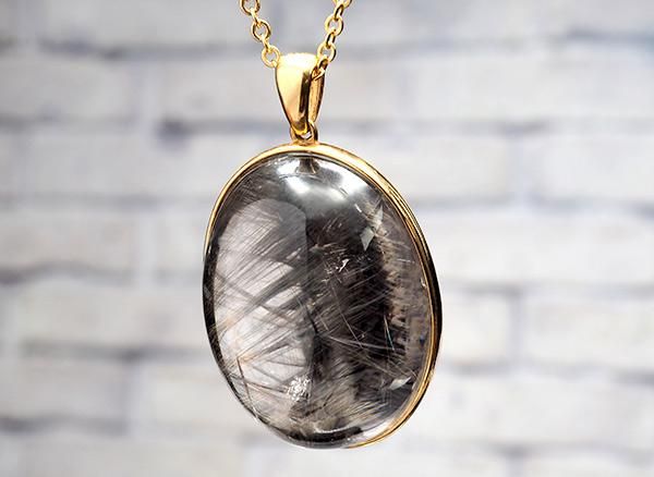 最高級のプラチナルチルクォーツを18金仕様でペンダントトップにしました。