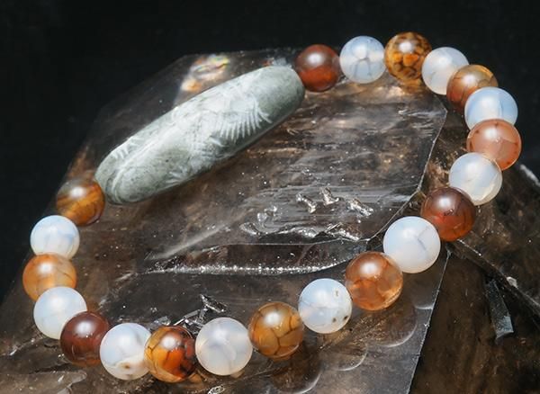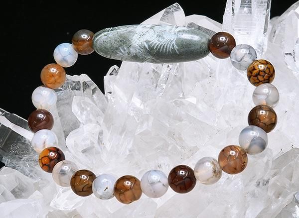 アゲートは一般的にグラウディング力が強く、情緒的、肉体的なバランスを強化し、身体的エネルギーのバランスを安定させる作用がある石で、現実的にな解決へと導いていきます。そしてネガティブなエネルギーを取り除き、緊張を和らげ、心の痛みを克服し、周囲との結びつきを強化していきます。