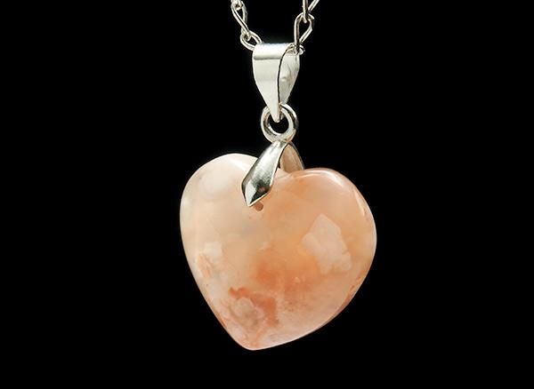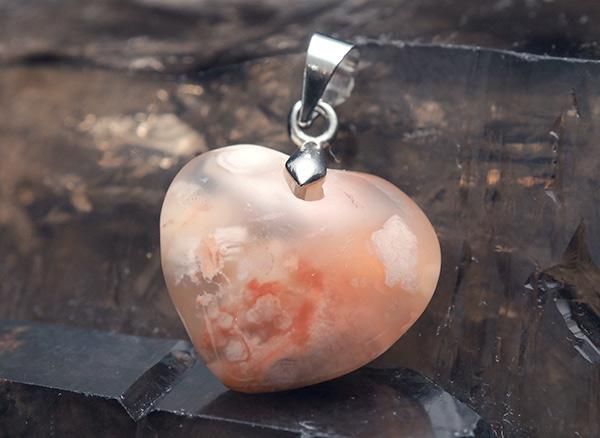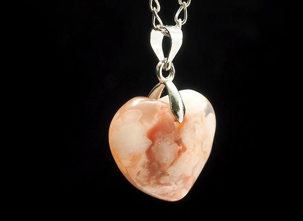 可愛らしいさくらアゲート(チェリーアゲート/フラワーアゲート)のハートペンダントトップ