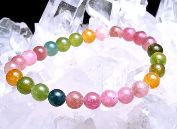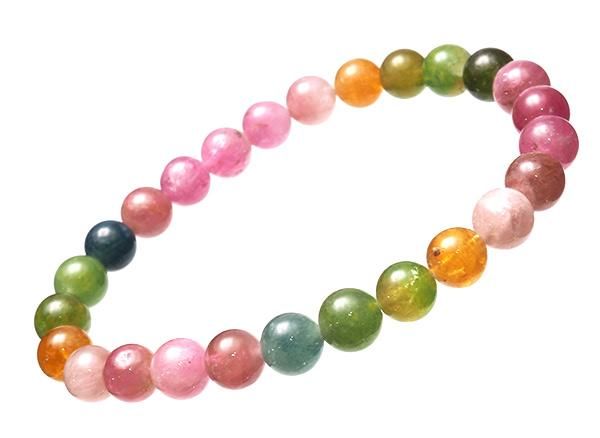マルチライトカラーのミックストルマリン3A 約7mm(26粒)腕回り:約15cm