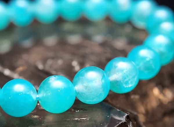 これぞアマゾナイトシリカの最高峰、色艶透明感すべてにおいて極上品です。マダガスカルで近年発見されたアマゾナイトシリカです。アマゾナイトの中に石英が、またはその逆で石英の中にアマゾナイトの成分が浸透した珍しい石です。新疆ウイグル地区でも発見されてますが、色が薄い感じのものが多いです。この手のシリカはビーズの中に黒い不純物も7入り込みやすく、ブレスの中でもすべての玉が不純物なしものものは非常に少ないです。特にこのカラーは女性のお好みのカラーで、ラリマー同様に今後価格の上昇はさけられないと思います。実際見に行くたびに上げってます。気になっている方はお早めにどうぞ!