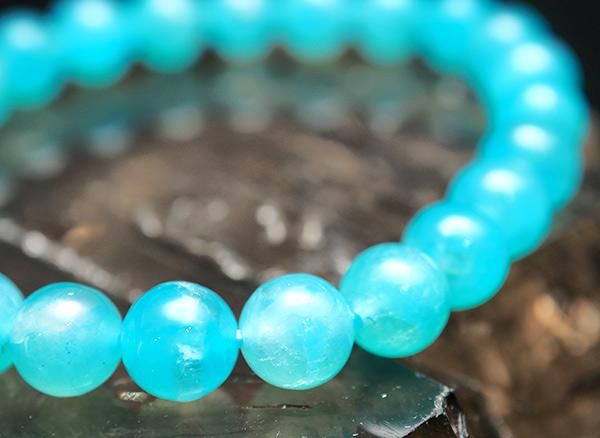 これぞアマゾナイトシリカの最高峰、色艶透明感すべてにおいて極上品です。マダガスカルで近年発見されたアマゾナイトシリカです。アマゾナイトの中に石英が、またはその逆で石英の中にアマゾナイトの成分が浸透した珍しい石です。新疆ウイグル地区でも発見されてますが、色が薄い感じのものが多いです。この手のシリカはビーズの中に黒い不純物も7入り込みやすく、ブレスの中でもすべての玉が不純物なしものものは非常に少ないです。特にこのカラーは女性のお好みのカラーで、ラリマー同様に今後価格の上昇はさけられないと思います。実際見に行くたびに上げってます。気になっている方はお早めにどうぞ!