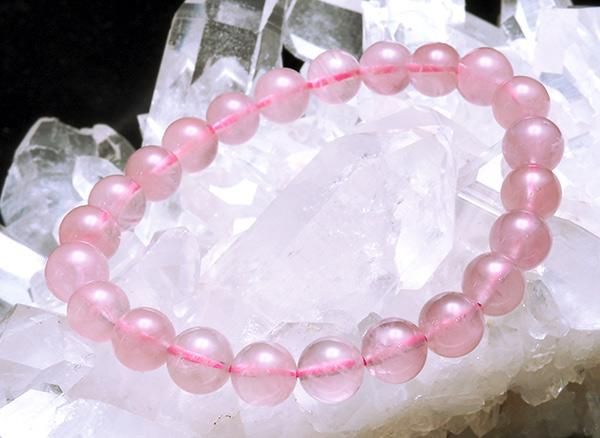 マダガスカル産のディープローズクォーツ3A+のブレスレットです。色彩も鮮やかで、透明感もあります。