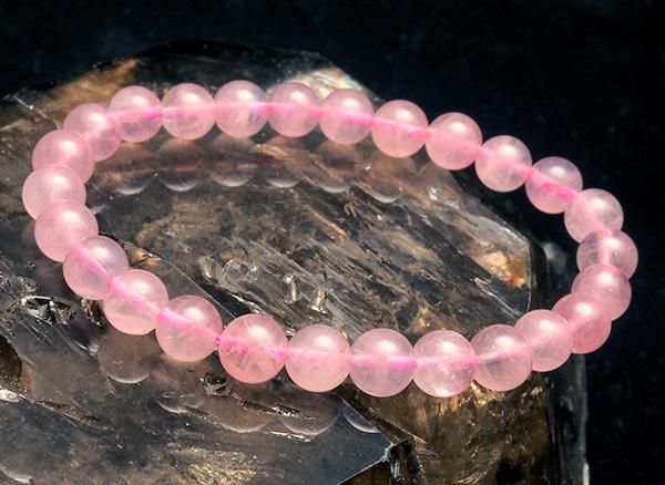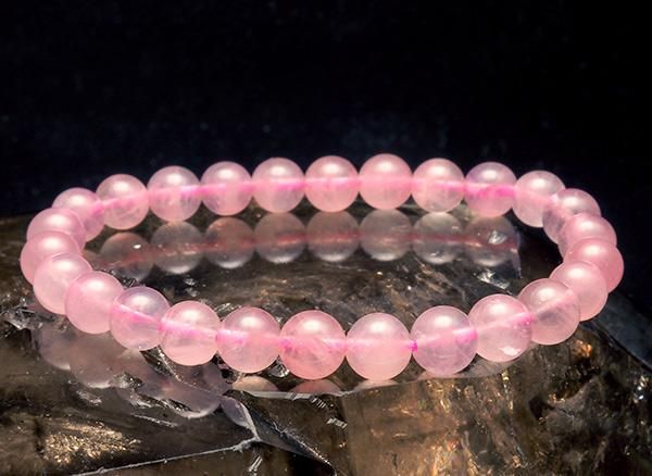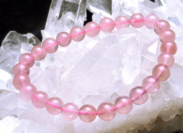 ピンクの色彩が美しいディープローズクォーツ約7mm(26粒)腕回り:約16cm