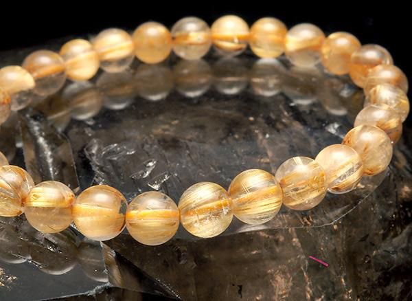 タイチンゴールドルチルクォーツ5A約6.8mm(27粒))腕回り:約15cm