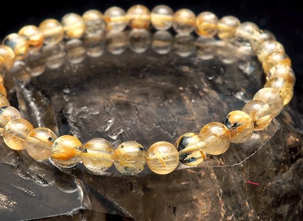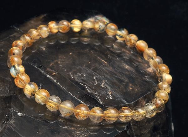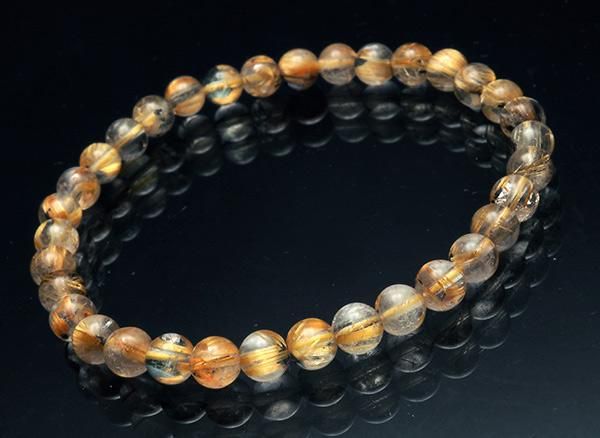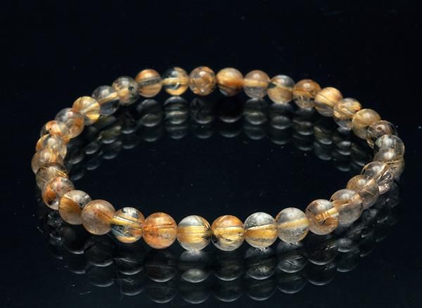 ヘマタイト入りルチルクォーツ4Aのブレスレット 約6mm(34粒)腕回り:約17cm