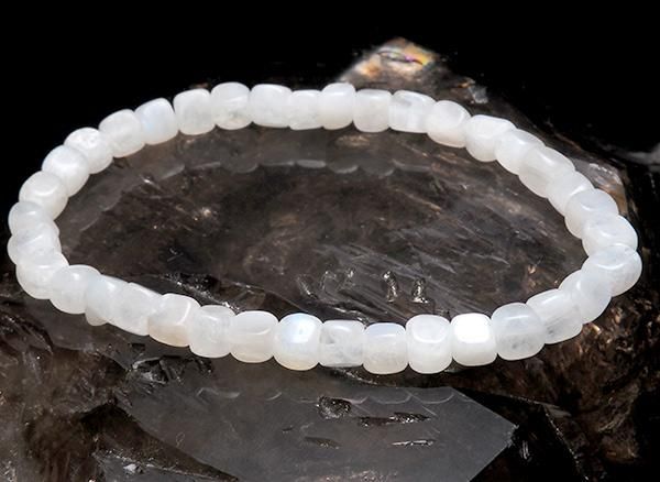 インド産のレインボームーンストーンのキューブ型ブレスレットです。