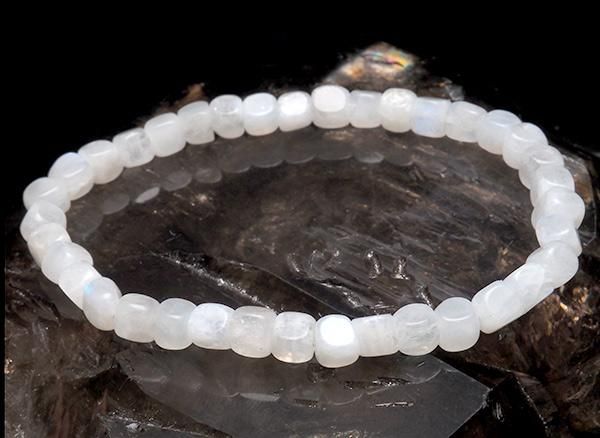 インド産のレインボームーンストーンのキューブ型ブレスレットです。